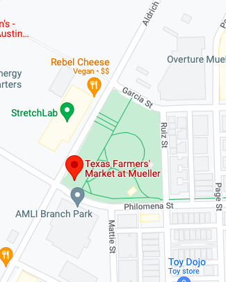 At the farmers market in the Mueller district in central Austin every Sunday, from 10am until 2 pm, inside the pavilion.